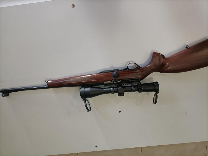 Muy rápido, ligero,corto y manejable.Tan solo ligeras marcas de uso en la madera. Incorpora monturas fijas y visor ADLER 2,5-20X50 RI.Se cambia por rifle de mi interés en otro CAMBIADO SE RUEGA CERRAR.