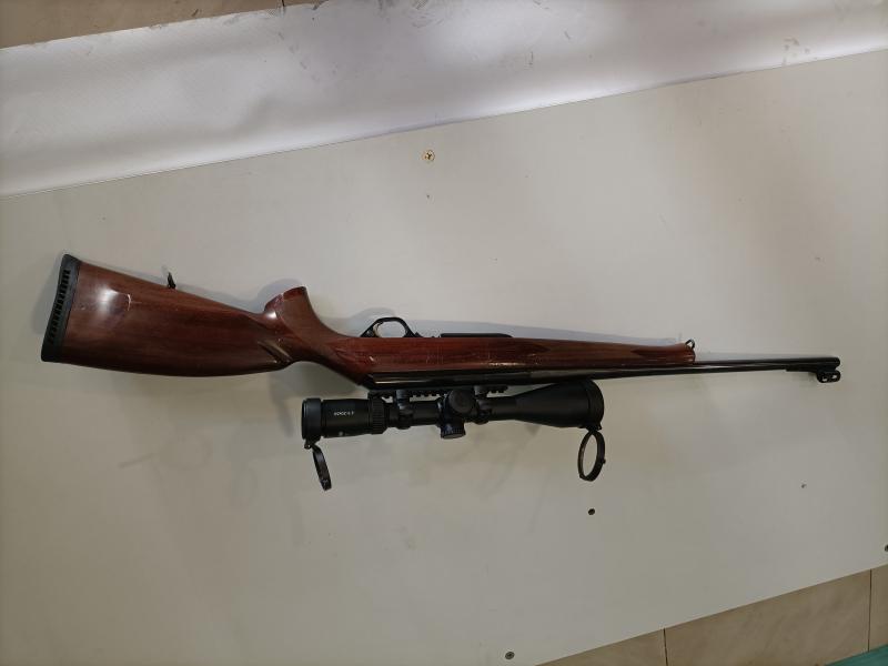 Muy rápido, ligero,corto y manejable.Tan solo ligeras marcas de uso en la madera. Incorpora monturas fijas y visor ADLER 2,5-20X50 RI.Se cambia por rifle de mi interés en otro CAMBIADO SE RUEGA CERRAR.