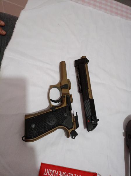 Pongo a disposición de trato una pistola p.beretta 92 fs modelo bronze en calibre 9 mm parabellum guiada en F el arma está recién comprada por mi en armeria top gun de alicante va con 3 cargadores todo de origen Solo tiene cambiado la varilla guia cambiada de acero de competición solo tiene 10 disparos de prueba .