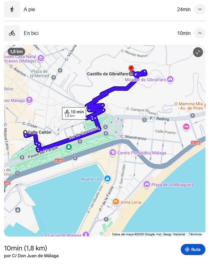 Os adjunto imagen del recorrido que hacían que es de 1,8 km ida + 1,8 vuelta,digamos 4 km por viaje, los 10 minutos que marca ahí en el mapa que seria a velocidad bicicleta, a toda velocidad en las motos subías en 3/4min sin parar pero nosotros en hacer la ida y vuelta tardábamos unas dos horas con las paradas y explicaciones que se daban por el camino aparte que no iban solo estas motos en las excursiones sino también iban Segways que eran la atracción principal.