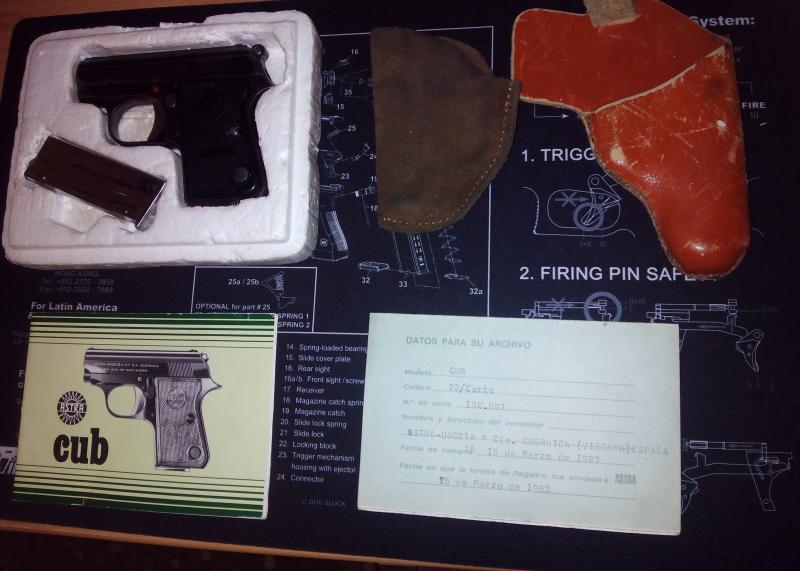 Se cambia Astra CUB del calibre 22 corto, con dos cargadores, dos fundas, caja y manual de instrucciones.
