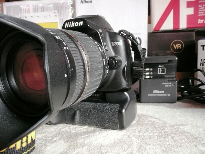 Nikon D3000, en perfecto estado de uso y funcionamiento muy poco uso. Cámara, instrucciones, betería original, grip para ponerle una batería mas y tener mas autonomía, objetivo a elegir entre el tamron 18/200 o el 28/200. La cámara se puede probar sin compromiso. Es una buena ocasión para hacerse con un muy buen equipo, en muy buen estado. Cambio por pcp