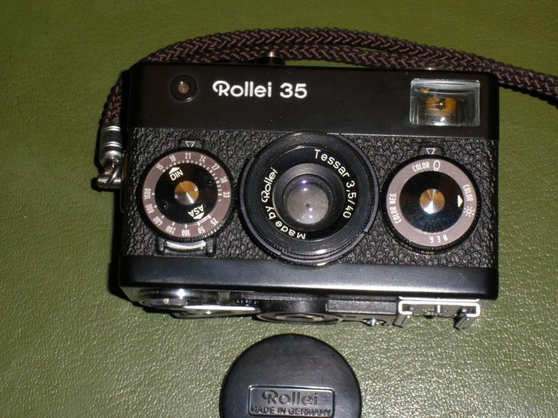 -Cámara de fotos ROLLEI con funda y flash originales.