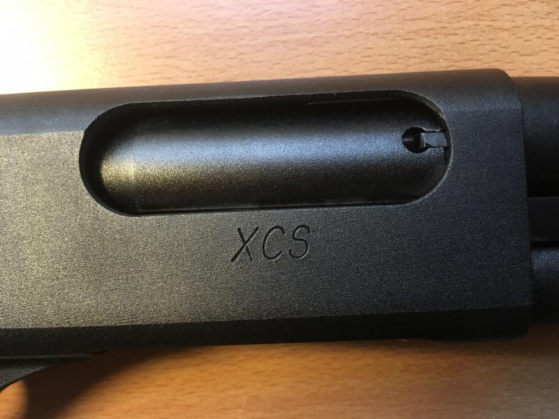 La Remington XCS es la gama alta de las escopetas remington 870, es una marine magnum XCS, cubierta con TriNyte externamente y niquelada internamente. Tiene culata y guardamanos "speedfeed".