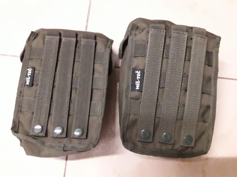 -Bolsillos multiuso grande MILTEC verde con anclajes MOLLE en su parte trasera. Modelo de tamaño grande: 16 x 10 x 21 cm