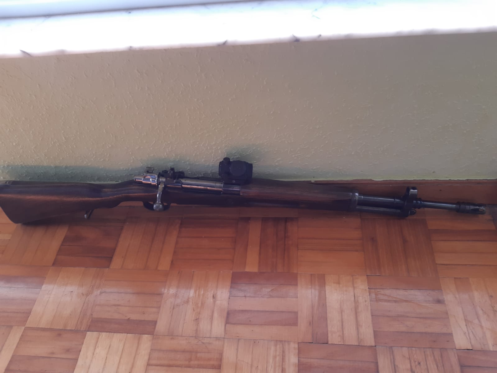 FR-8 calibre 308 Win. en buen estado estético y de funcionamiento, lleva instalado un punto rojo Bushnell y tiene el cerrojo curvado, cambio por rifle de caza Browning Bar o Blr, no importa mucho el estado estético mientras funcione bien.