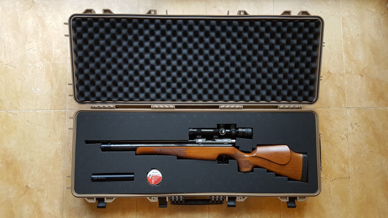 Cambio carabina PCP AIR ARMS S400 4,5mm + visor MTC VIPER CONNECT SL 3 12X24 SCB2 + MONTURAS HAWKE 9-11mm + SILENCIADOR LOBO + MALETA + baqueta de carbono + 4 cajas perdigones Cometa Exact Heavy, sin marcas, en perfecto estado y prácticamente sin uso. El conjunto está valorado en unos 700€ (precio 2ª mano)