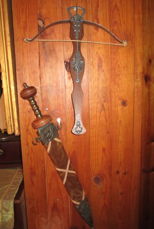 Regalo la ballesta decorativa que la acompaña en las fotos.