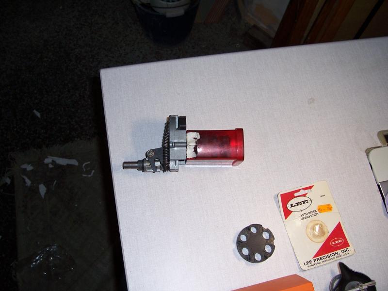un dosificador lee de polvora con discos dosificadores pero el plastico esta reparado, hay repuestos.