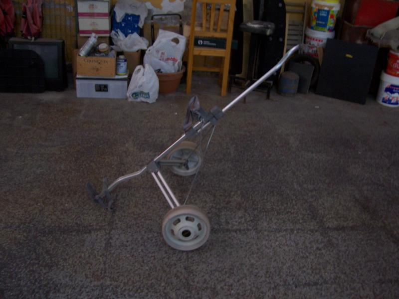 es un carro de golf para una bolsa es plegable.