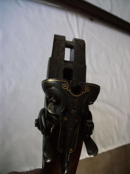 Gracias por contestar a todos tan rápido y en especial a ti Fenris, se nota que eres experto en armas. El cañón izquierdo en efecto tiene choke. La cantonera es de hierro y además debajo del guardamano tiene una numeración como de serie que no ha salido en la foto. He medido el cañón y tiene 73,5 cm.