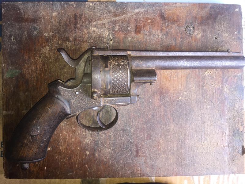 Es un revolver de tipo "Lefaucheux" o "de espiga". Fueron muy comunes en Europa a mediados/finales del Siglo XIX.