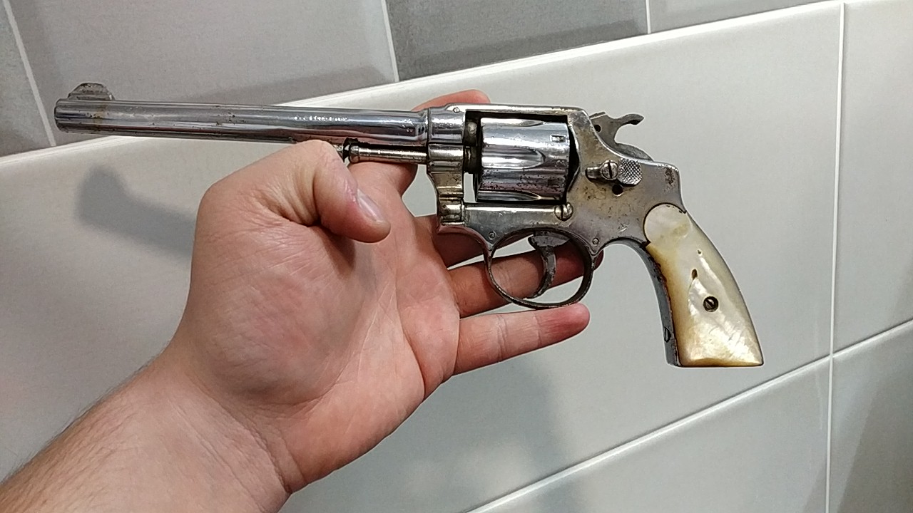 Yo diría que es una copia del revólver americano Smith & Wesson Hand Ejector 1905 en calibre .32 largo con cañón de 6 pulgadas fabricado seguramente en el País Vasco sobre la década de 1910.