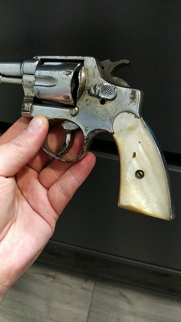 Lo unico que parece obvio es que se trata de una copia (al menos parece copia) de un S&W hand ejector, no viendo bien los marcajes es muy complicado decir más .
