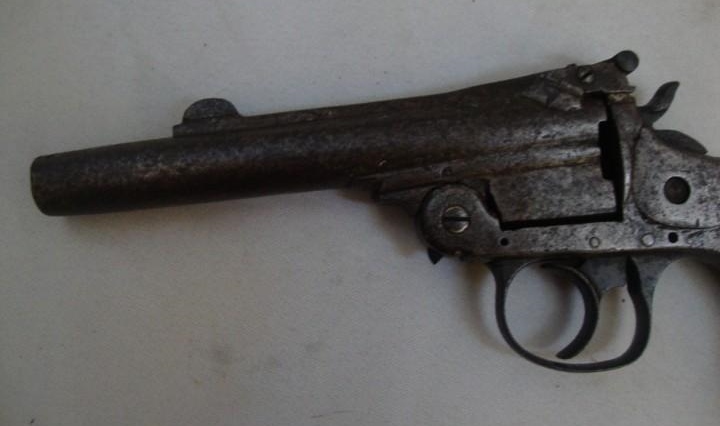 Es una pistola de fuego central, de un sólo cañón, abatible y con aspecto exterior de revólver. ¿Habíais visto algo semejante? Resulta curioso hasta el punto de mira retrasado, como si el cañón hubiese le crecido ya de mayor... :mrgreen: