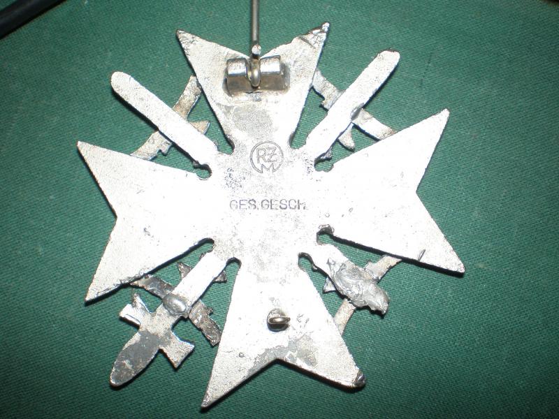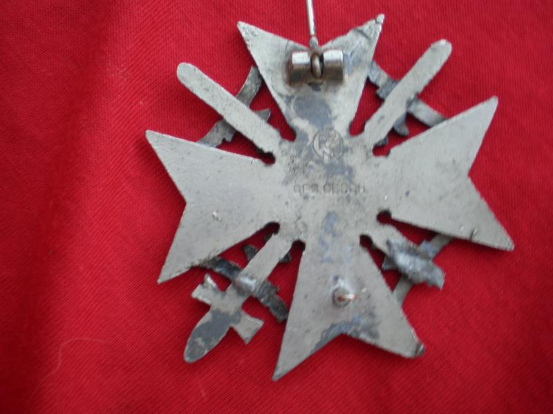 A caído en mis manos una cruz de la legion condor, pero no se si es replica o falsa haber si algún guro del foro la puede reconocer, el marcaje trasero lo e visto en algún cuchillo de las juventudes hitlerianas, paso un copiar pegar de una pagina web