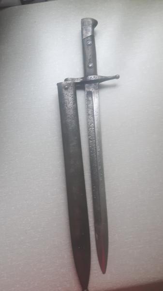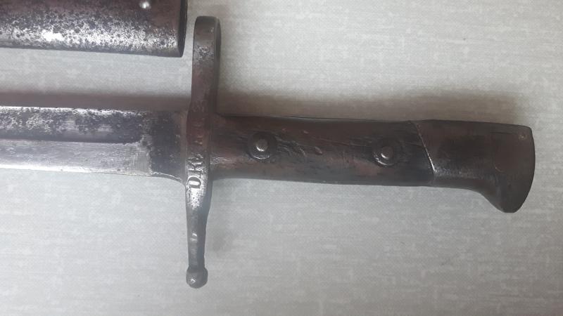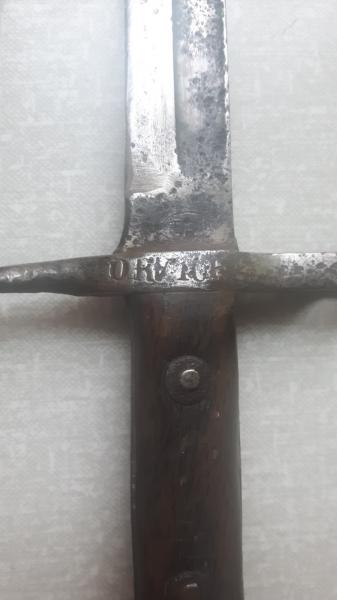 Hola compañeros: me podriais identificar esta bayoneta, esta muy estropeada pero la tenia mi padre en casa y cuando murio aparecio en un mueble. En la guarda puedo leer O R V 1062 y en la hoja debajo de la guarda tiene un circulo oval pero no se distingue nada. Os agradeceria que me dieseis alguna informacion. Muchas gracias