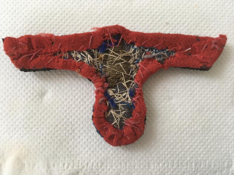Siendo en dorado, y con la inclinación hacia abajo de las alas del águila, debió ser de la gorra de un general de la Wehrmatch. El fondo de soporte en rojo, también coincide.