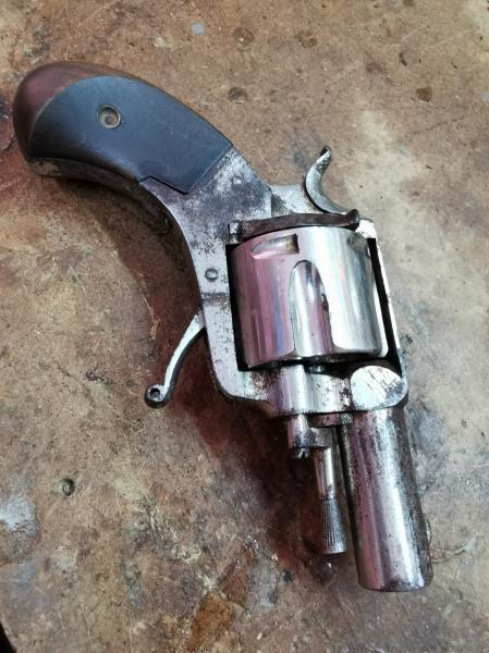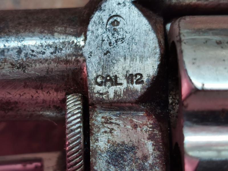 Hola amigos , me ha llegado a las manos un arma que desconozco , es un revolver que debe ser como minimo de la guerra civil , o eso creo yo , en las fotos que os paso se ven algunas marcas , "BULL-DOG" , Cal 12 , y lo que parece un punzon con una corona , al medir el alojamiento del casquillo me da 11,6 mm. que corresponderia a un 45 pero no concuerda con la marca de "Cal12", a ver si alguien me puede decir algo sobre él , muchas gracias de antemano.