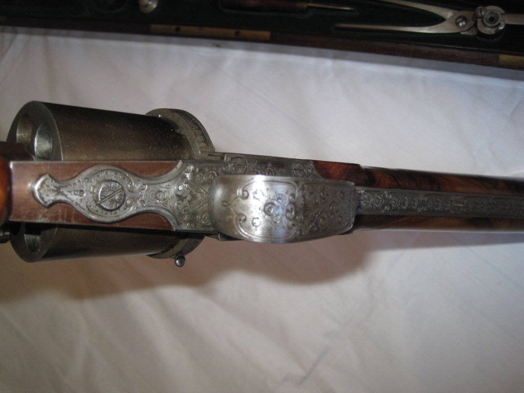 Es que no encuentro nada en armas de Lefaucheux fabricadas en Francia, que hayan usado ningun calibre de los que citas. A saber el .54 British o el .58 americano.
