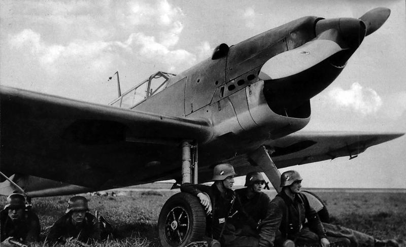 Esta es otra foto muy bonita de soldados de la Cóndor en Alemania con uniformes y cascos de la Luftwaffe posando debajo de un Messerschmitt Bf-109B del Jagdgruppe 88 que luce los colores característicos de la Guerra en España.