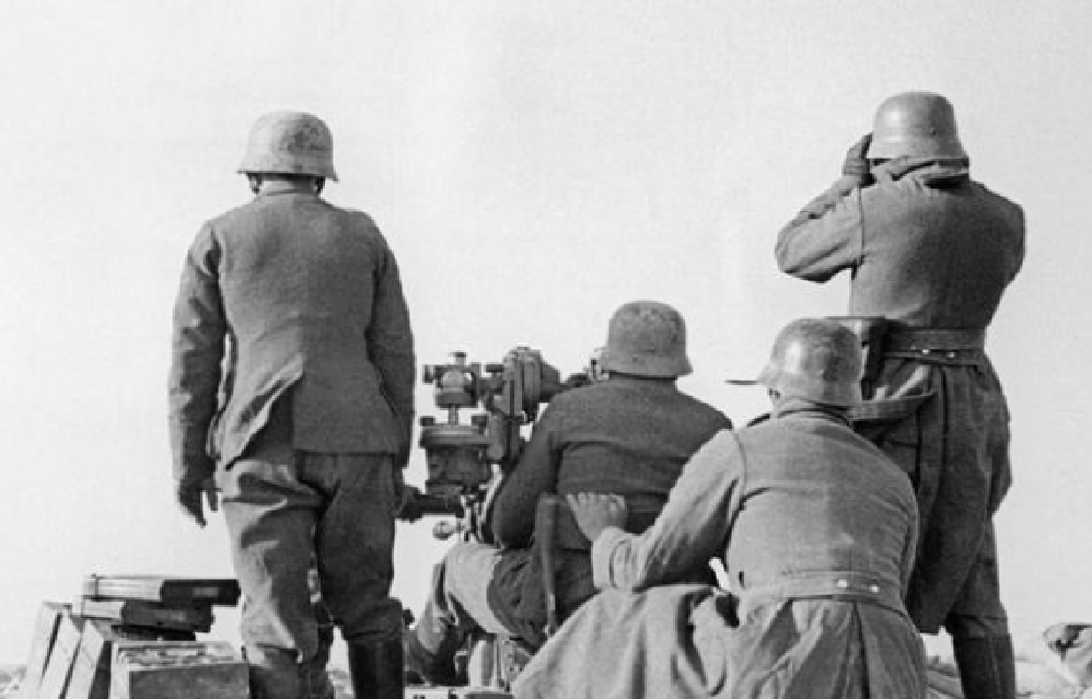 Otra del artillero con prismáticos y su funda de Luger al cinto.