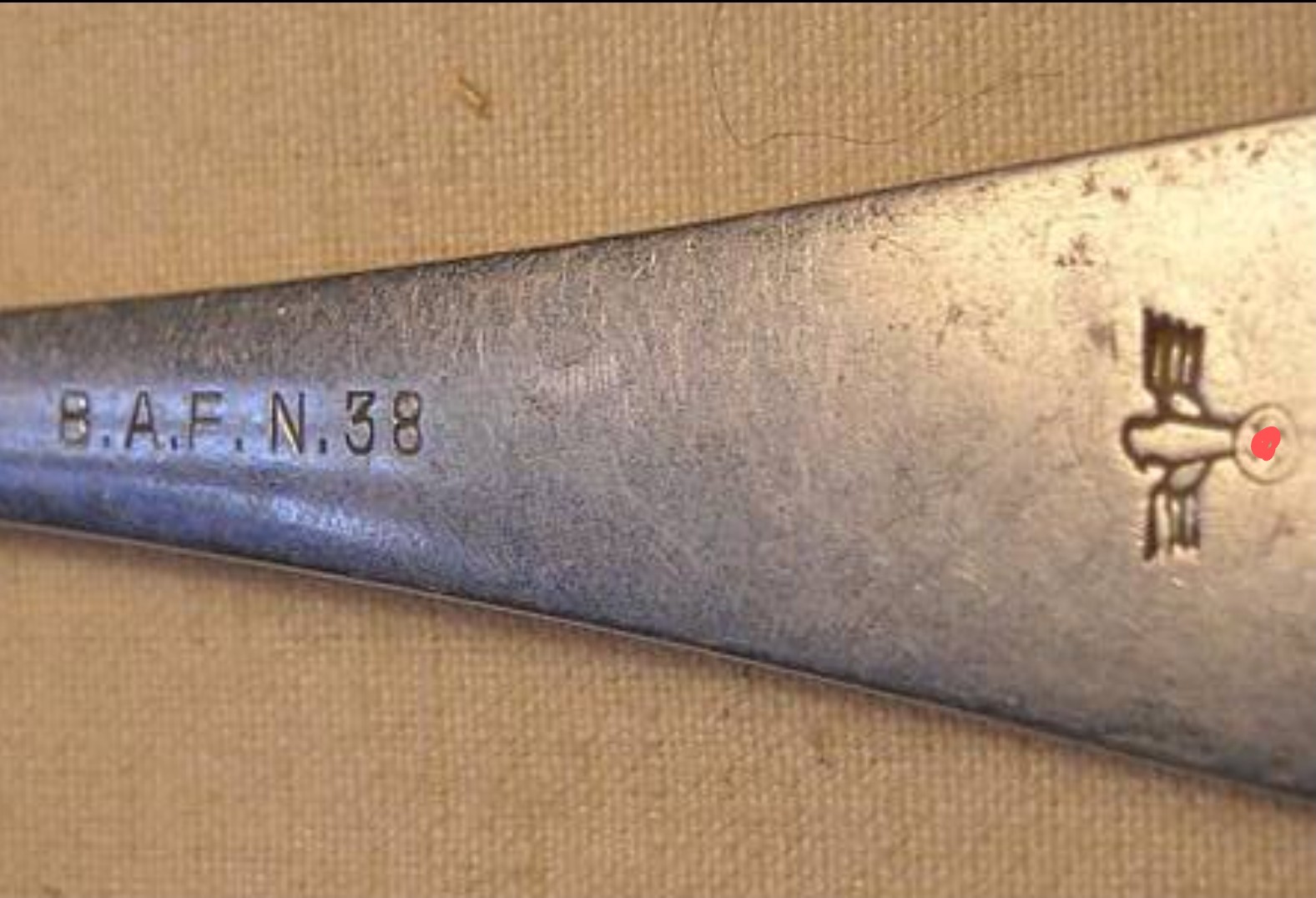 Hola! He estado buscando información sobre este marcaje (Foto al final del post), He encontrado que pueda referirse a una fábrica alemana "Bayerische Alpaccawarenfabrik AG, Neu-Ulm", y al año de fabricación (1938), pero la "N" me parece que esta demasiado separada de "B.A.F." para seguir siendo las siglas del nombre, ademas no hay "N.39", o "N.40", y me extraña un solo año de producción.