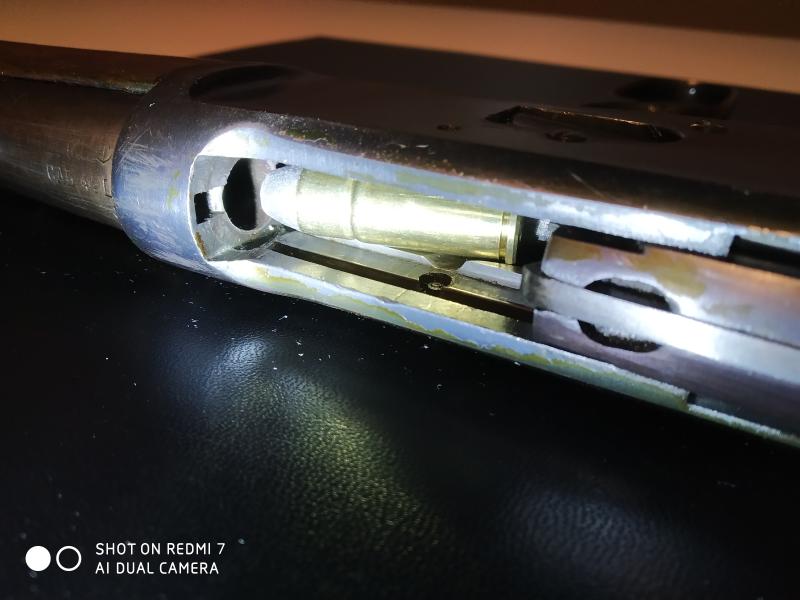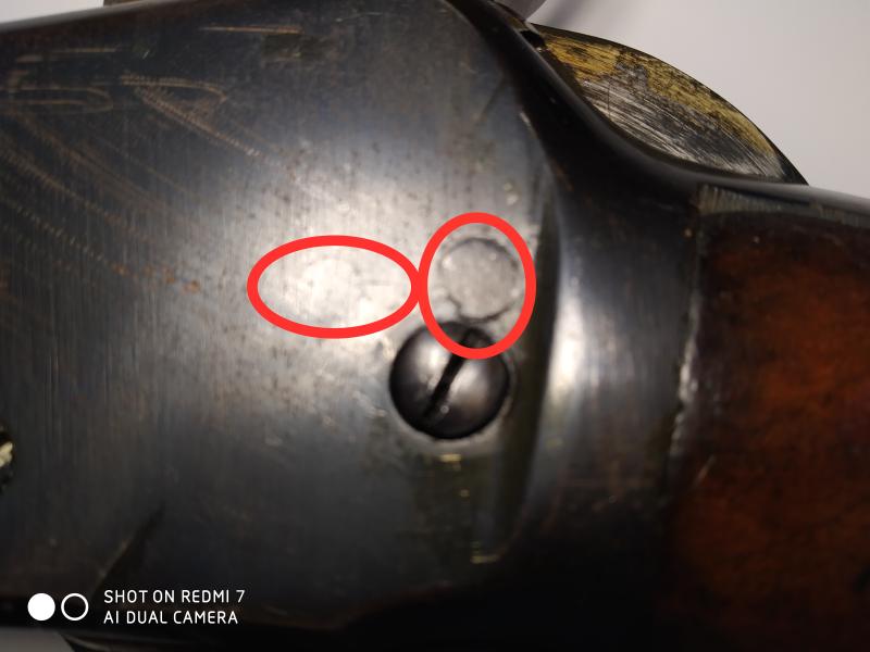 creo que el porta anillas va soldado por el interior, si lo cortaron a ras, pulieron y re pavonaron, es posible que no se note o que parezcan tapones.