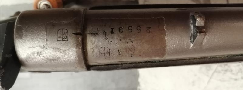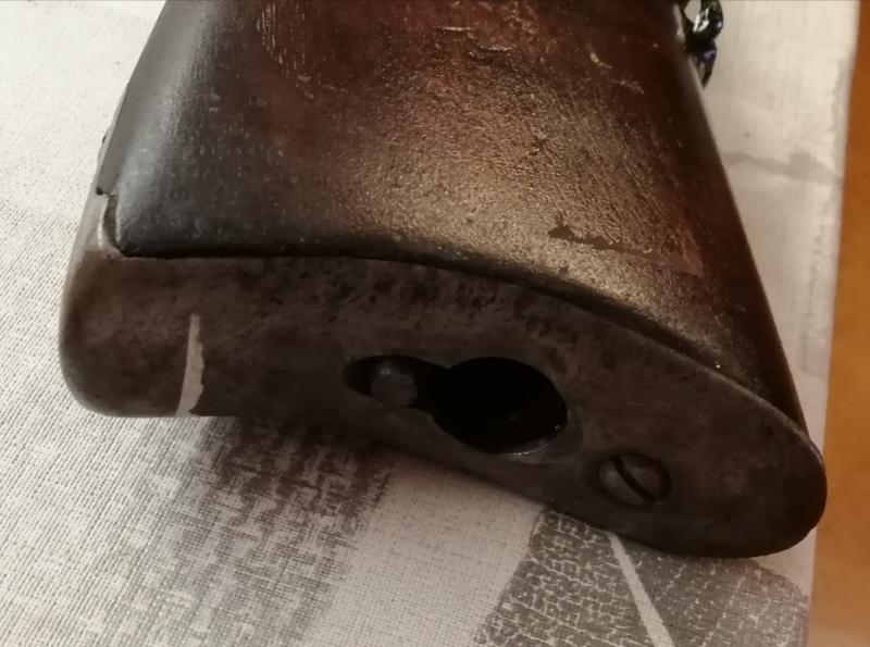 Cantonera con porta balas y los cuños que se ven, puede que al quitar la pintura durante la restauración salgan más.
