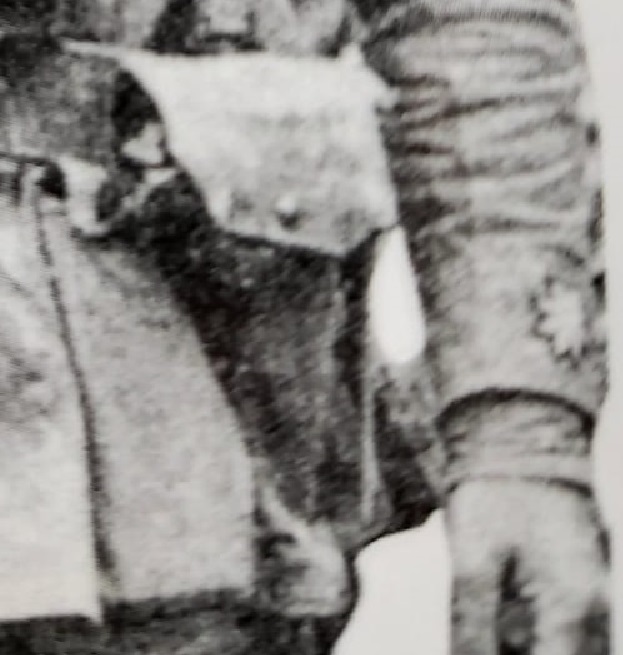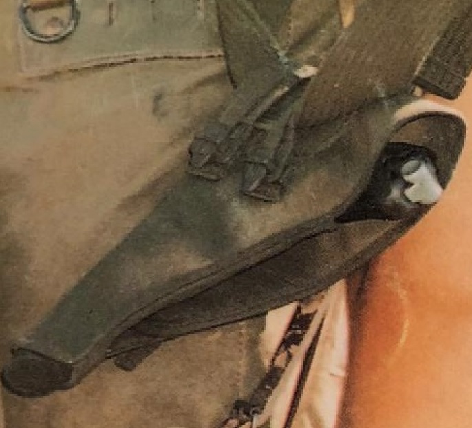 Al cinto lleva lo que no puede ser otra cosa que una funda para la pistola Parabellum P.08.