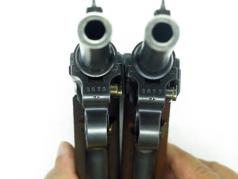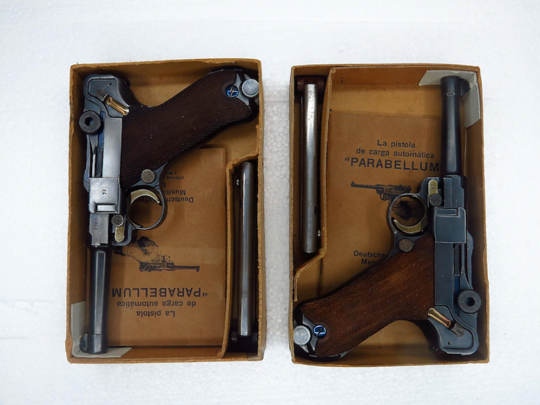 Corresponden a dos P08 comerciales de 1936 con numeración consecutiva, manuales de instrucciones en castellano, cargadores correspondientes y cajas originales que seguramente llegaron a España en la primera mitad de 1936 y su destino fue mantenerse juntas y sin haber sido usadas hasta hoy por lo que están como dicen los americanos, nuevas en sus cajas (NIB new in box).
