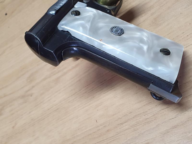 Según Antaris, esos últimos lotes de ventas individuales, cuando ya no se producía esa pistola, fueron montados algunas con el armazón de marina, de los números 104151 al 105275, con lo que coincide con la tuya, que debe ser de las últimas, ya en los años 50.