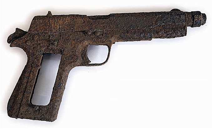 Sin embargo esta pistola, o mejor dicho lo que queda de ella, tiene un par de características que la hacen muy, muy particular.