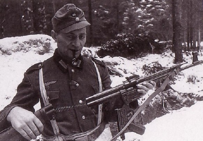 La ametralladora ni idea, ya sabes que no es lo mío. En cuanto al otro, que es el ancestro del fusil de asalto, padre del AK 47 y del G3, así como del CETME, es el MP43 o el MP44, el mítico Sturmgewehr, denominado asó por el mismo Hitler en persona.