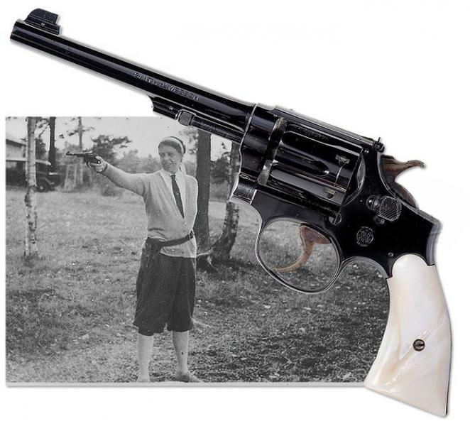 En cuanto al arma yo me decantaría por un SW Modelo 10, a pesar de que el alza me descoloca un poco. Por lo que respecta a la señora... NPI