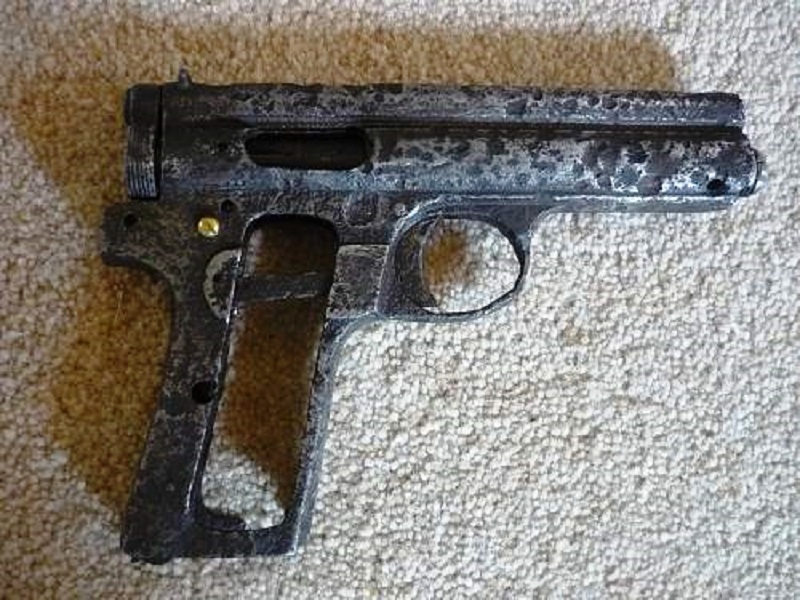 Esta segunda en concreto viene además con unas cachas de aluminio que a veces algunos presentan como una variante muy escasa y valiosa de cacha dentro de la producción tardía de Sauer, pero esto no es verdad.
