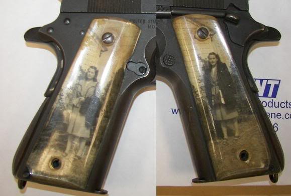 Efectivamente se trata de un S&W M1917, dotado de unas cachas personalizadas de plexiglás.Este tipo de cachas artesanales se popularizó en el ejército americano durante la II GM, siendo conocidas como "Sweetheart Grips". Se cree que el material para hacerlas procedía de las ventanas de aviones derribados que las tropas iban encontrando; debajo colocaban fotos familiares o de pin ups.