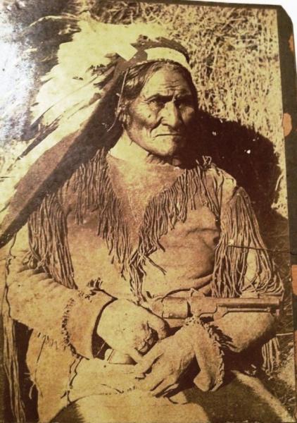 El segundo es el conocido jefe Apache Geronimo de la tribu de los Chiricahuas pero el revólver que lleva no es un Colt Navy.