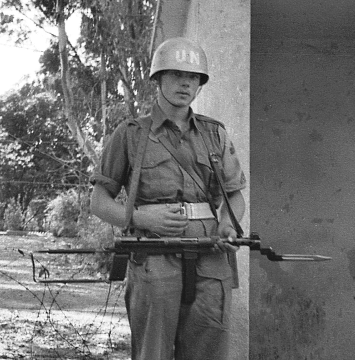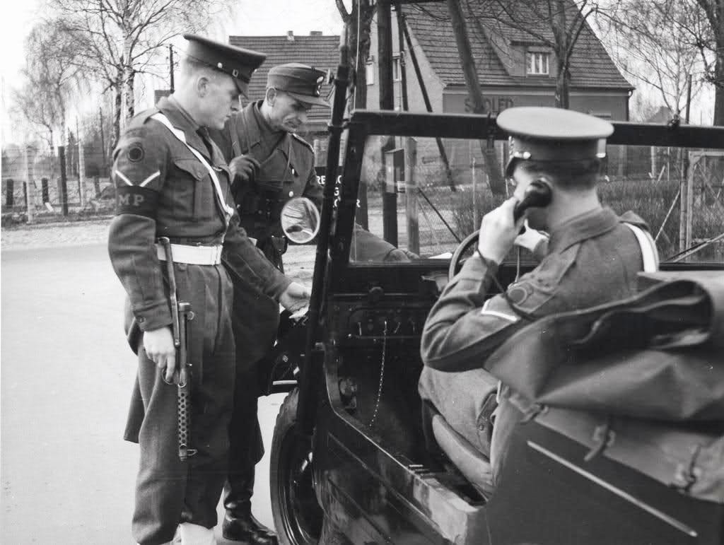 subfusil Sterling de 9mm parabellum en manos de un Policia militar Britanico en algun puesto de la Alemania de post guerra