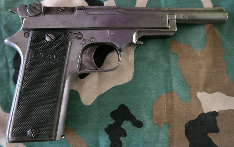 Buenas tardes , tengo unas dudas sobre esta arma creo que es una Star 1919 modelo 2 ( 7.65) modelo militar con cañon de 138 mm pero la duda me surge por que en en libro de coleccionista aparece como modelo 1914 año fabricación 1923/47 y en la corredera solo aparece automatic pistol Star 7.65 ni punzones ni marcas, el numero de serie de todas las piezas ea 756, si alguien puede ayudarme se lo agradecería. Muchas gracias