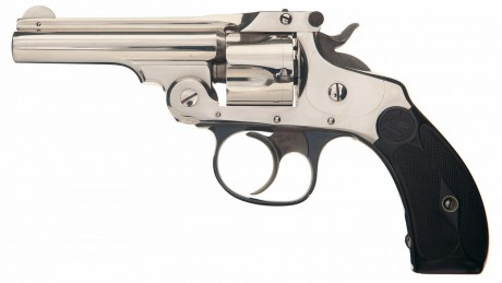 Yo no me atrevo a decir cuál es el tercero aunque como bien dices podría tratarse perfectamente de un pequeño, sobre todo comparado con los otros, Smith&Wesson 1880 DA seguramente en calibre .32 y con un cañón de 3 pulgadas.