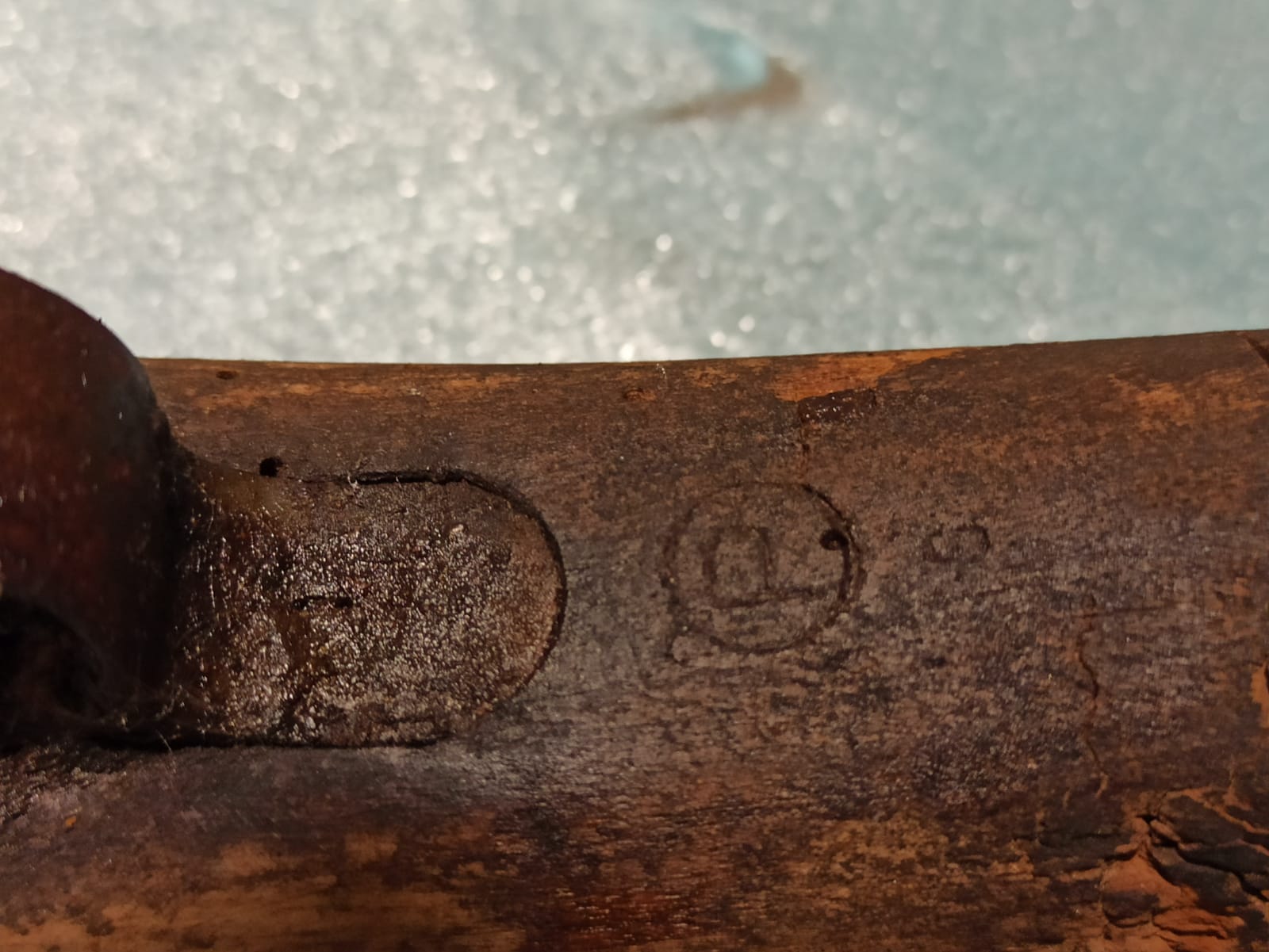 La P en un círculo es la marca de prueba (proof mark), por lo que he podido ver en la red, aunque eso de poner tal marca en la madera me extraña (https://sites.google.com/site/wwii1903a ... ck-example)=