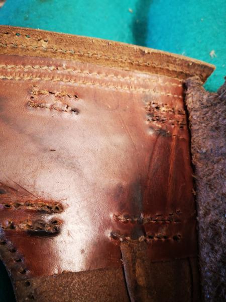 Era un cuero terriblemente reseco y quebradizo, y su uso no fue sencillo. Pero el afán de tener partes originales fue mucho mayor y creo que mereció la pena.