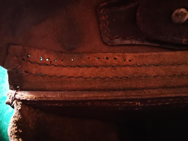 Aqui vemos los restos del cosido de la fijación de la bolsa porta herramienta, y los restos del cosido de la trabilla de sujeción de la baqueta