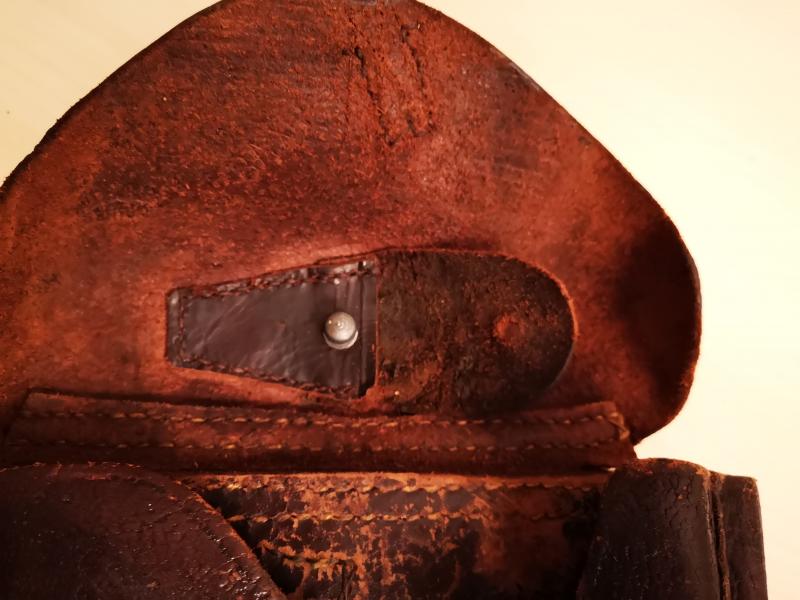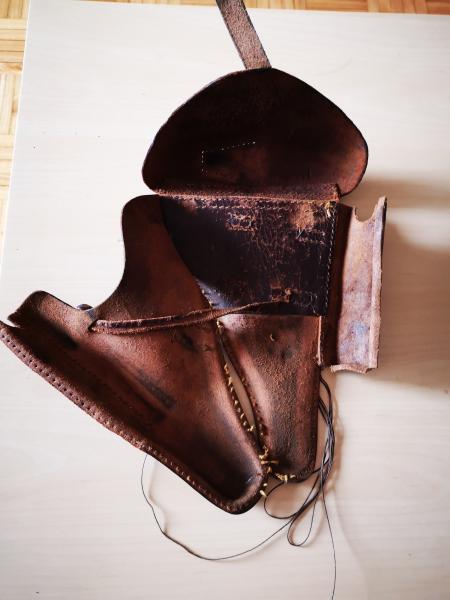 Decidí que adaptaría unas nuevas trabillas traseras. Encontré el cuero necesario en calidad, grosor y mas o menos el color, en una funda sueca para Lahti/Husqvarna.