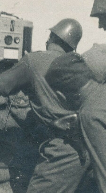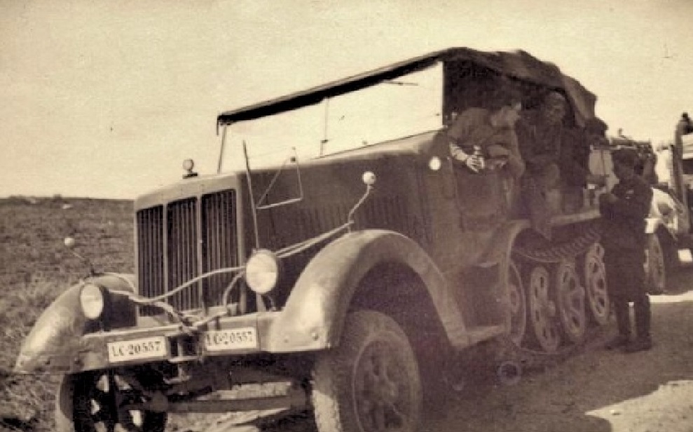 Empezamos con esta de un semioruga en tránsito y un miembro de la Cóndor con su Luger. Nótese el detalle de las siglas "LC" en la matrícula del vehículo.