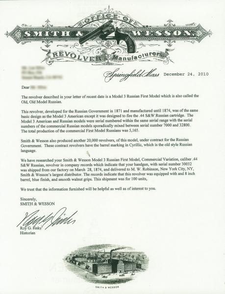 Hola de nuevo he encontrado una carta de Roy Jimks, historiador oficial de S&W, acerca de un 1st Model Russian, con SN en los 30XXX. Te la agrego