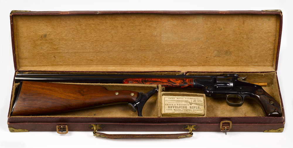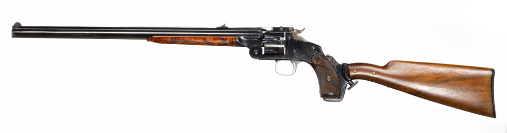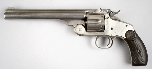 Puede ser : SMITH AND WESSON New Model Nº3, Australian Model, Calibre .44 Russian, fabricado en 1811, acabado Nickel, 250 con cañones de 7 pulgadas, y culatines de madera adaptables, más otros 30 Nickel con cañones de 6 pulgadas y media, sin culatin.