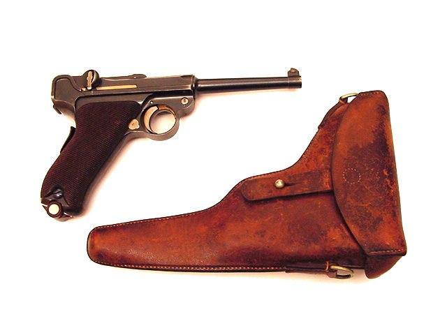 Yo diría que la funda es esta y por tanto dentro de ella lógicamente habrá alguno de los modelos de Parabellum Suiza.