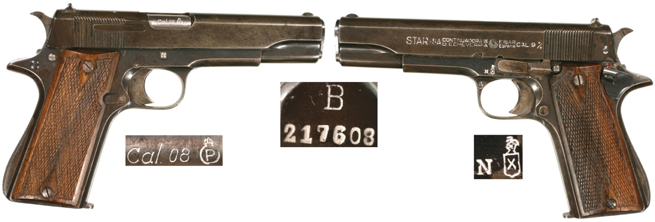El hecho y lo curioso del tema es que estas 4.000 pistolas Star B de Marina no tienen punzón de aceptación WaA y sin embargo las otras 4.000 armas de ese 2º contrato de la misma fecha 26 de Julio del 43 pero destinadas al Heer si fueron marcadas con el WaA251 en la Oficina de armas de Hendaya.